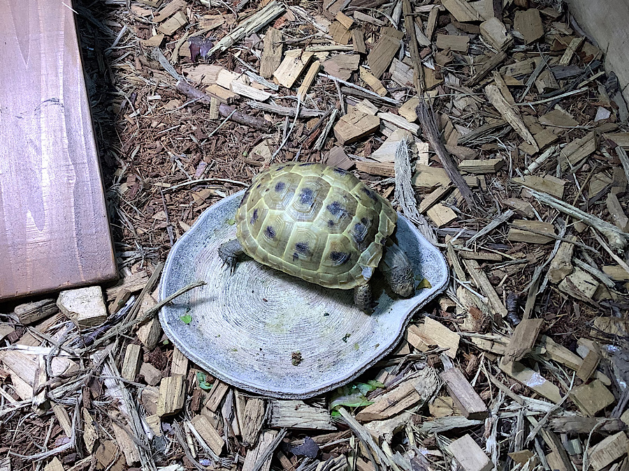 エサ皿に付いたサプリメントのカスや1㎜くらいの葉っぱを必死に食べようとしているようだが、悪いけど無視(‘Д’) エサの追加はなし。オレだってほかにやることあるのよ(;’∀’) かめぢからベースとかに登ってビューンって滑り台みたいに降りて遊んでてくれ。だんだん疲れて眠くなるだろう…しかし、寝ない個体が多いかめぢからだ。何故、他店のリクガメは元気がないのに、かめぢからのリクガメはこんなに元気なのだろうか。その秘密こそかめぢからの飼育技術にある。かめぢからに行こう。