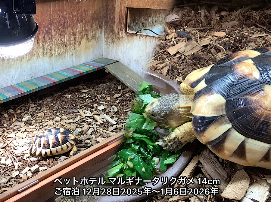 1月6日にチェックアウトのカメ君たちが多いが、去年12月26日からの床材通関の続き、X線検査などで1月6日は出張、休業となってしまった。そんな訳でチェックアウト日を再調整してのペットホテルとなった。皆様にはご迷惑をおかけしてしまったが2026年一番大きな仕事を終えて今は安堵ともう今年の仕事は全てやり切った感である。だから2026年はもう働かない。