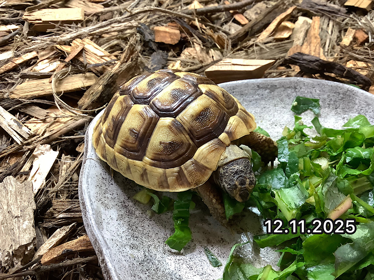ケニア産ヒョウモンガメでにぎわっておりますかめぢからです。今回はチェソゴン君をアップ。お店の電気が消えてもかめぢからベースの上に登ったり降りたりしている活発な個体です。一見すると派手なモザイク迷彩をしているヒョウモンも野生ではサバンナに同化する見事な保護色になります。お店では力土コートに同化して発見し肉時もありますよ。エサ食い絶好調。タンポポとオオバコを中心に野草野菜、サプリメントを与えています。