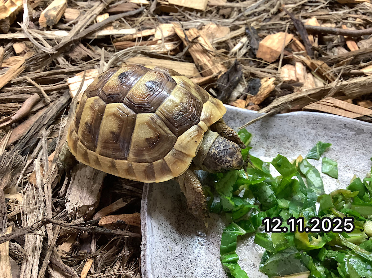 Testudo graeca ibera 生産地EUCB2024 原産地ギリシア 性別不明 販売開始日2025年12月(入荷日2025年6月) 寿命約40年 最大±25cm 投薬/病歴/MCなし