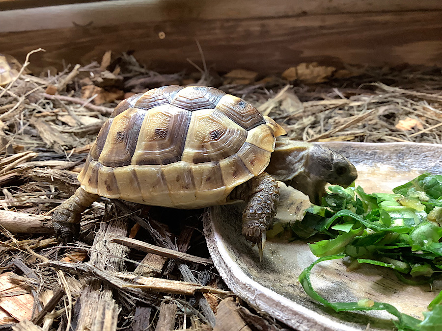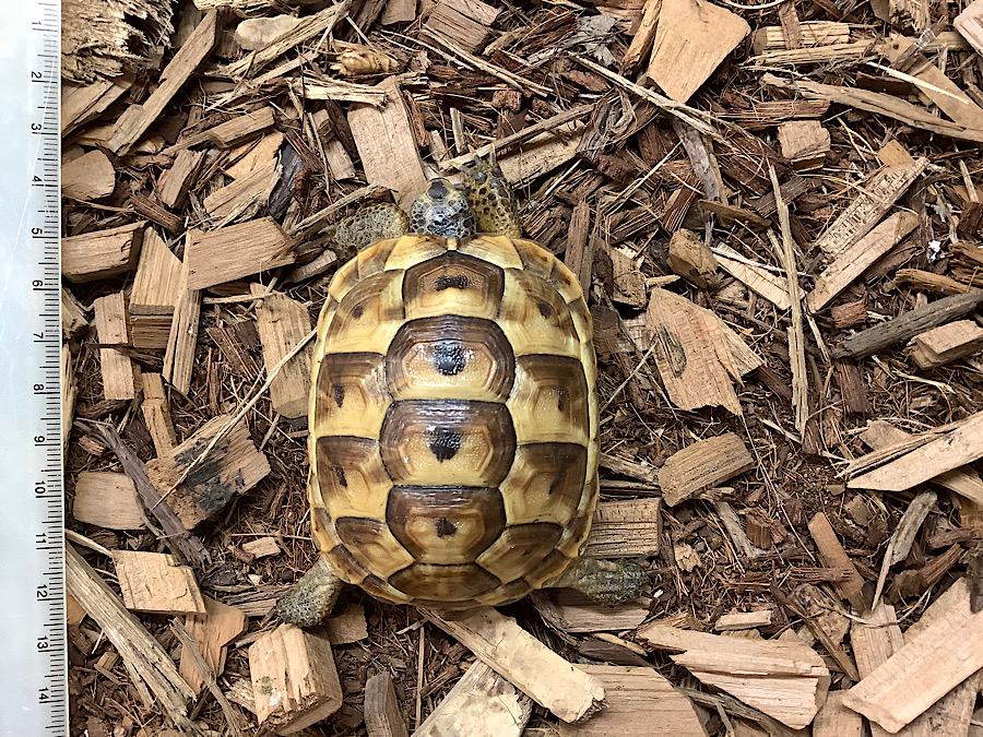 Testudo graeca ibera 生産地EUCB2024 原産地ギリシア 性別不明 販売開始日2025年12月(入荷日2025年6月) 寿命約40年 最大±25cm 投薬/病歴/MCなし