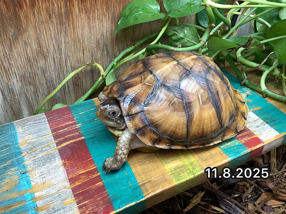 ニシヘルマンリクガメ サルディニア島産、2025年EUCBの入荷です。輸入より2か月ほど経ち日に日に確実に大きくなっているようなのでHP掲載。ニシヘルマンの当歳ベビーは小さくて本当に可愛いです。ちょこまか動く、かめぢからベースに登る、飛び降りる、ゼンマイ仕掛けのロボットのようで本当に可愛い(2度目)。しかしその小ささ故、健康状態を悪くするとリカバリーが難しく、体力がありません。確実にかめぢから飼育セットを揃えて飼育に臨んでいただきたいものです。エサ食い絶好調。タンポポ、ヘラオオバコ、ノゲシ、小松菜、チンゲンサイに、すりおろしリンゴ、サプリメント添加で給餌しています。こんな小さくてもかめぢからベースの上に登って飛び降りてくるんだから大したものです。