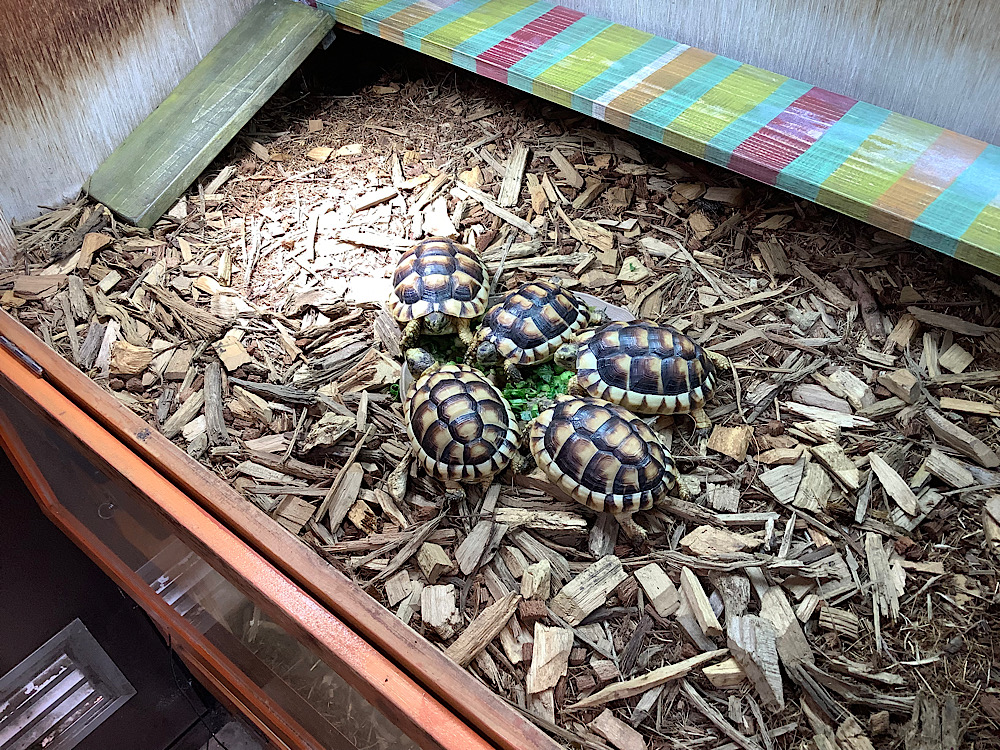 生体の1個体ずつ掲載終了。2026年からはこのようにグループ掲載にしていくので、気になる個体がいたらご来店予約を入れてお店まで見に来てくれ。上にあるのがマルギナータ君たちのルーティン。13時30分~15時までのエサやり時間は多忙を極める。できるだけ避けてご来店予約を入れてくれ。だが、エサを食べている姿を見たいという客人も多いだろう。この時間にご来店希望の場合はエサやりを手伝ってもらうかもしれん(;’∀’) 強制労働ではない、むしろお子様は大喜びでエサやりを楽しめるだろう。当HPのリクガメの飼育方法では1日のリクガメ君の生活しか公開していない。このような飼育を実現するための本質的な技術は店頭でオレ様大王に聞いてくれ。リクガメの飼育設備を揃えてない人はかめぢから飼育セットがお勧めだ。セッティングまで頼んでオーダーしよう。当店以外で飼育設備を揃え、初会ご利用の客人にはご来店予約時に準備している飼育環境の写真を送っていただく。では、よろしく頼む。