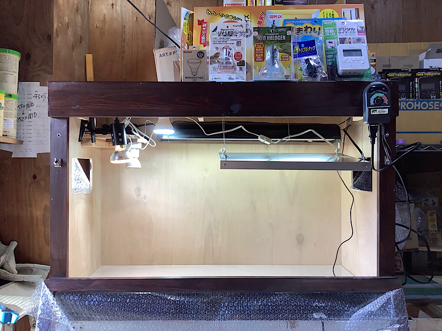 サーモはカミハタテラリウムサーモ中古、タイマーはREVEX新品を使用。