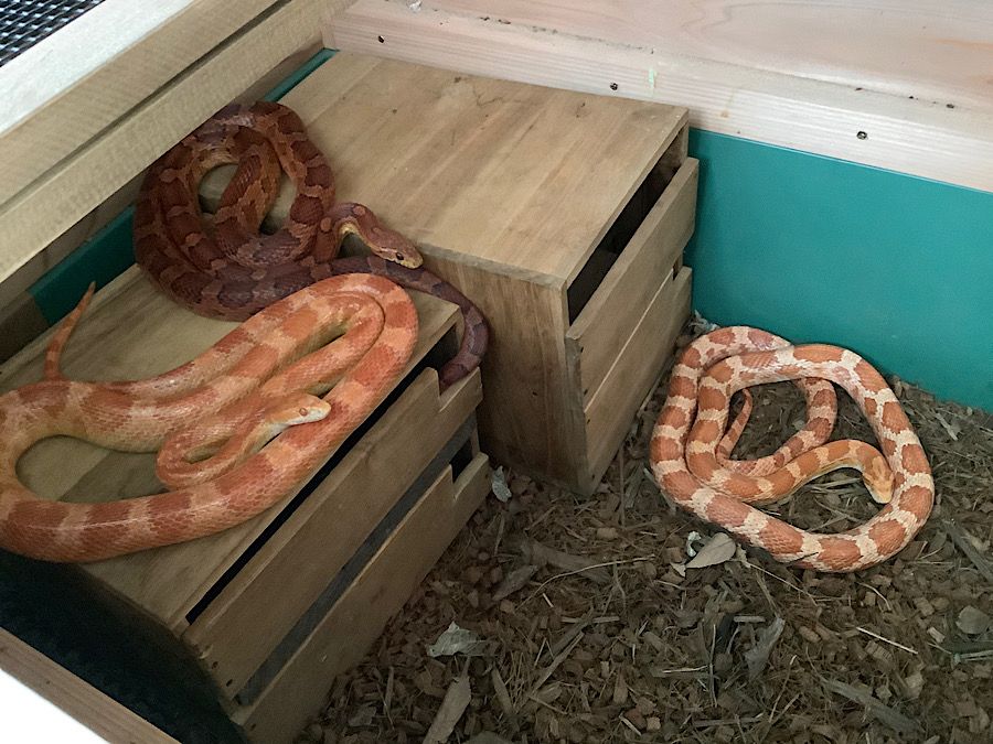 冬眠させていたコースネークアダルト4個体も皆元気に起きてきている。いやもう絶対ブリード可能なんで、1.4グループで掲載中のコーンアダルト誰か買ってください。この個体たちもCBが採れちゃうとオレの仕事が増えて大変なのでオスとメスは分けて飼育する。ブリードできるけどあえてやらないシリーズ。なんかカッコいい。皆、殖やしたくて必死なのに(;’∀’)