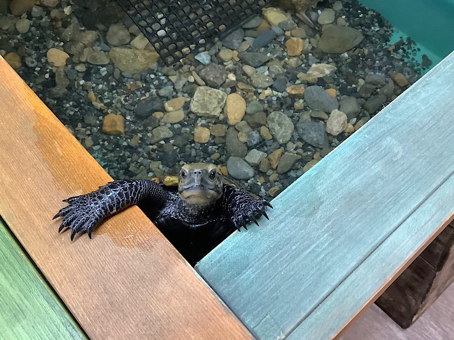 毎日お店のカメと会話をしながらお仕事中です。会話と言ってもほとんどカメボスの一方通行的なカメに対する声掛けとツッコミです。かめぢからの日常の写真を見ながら皆様もツッコミを考えみてください。