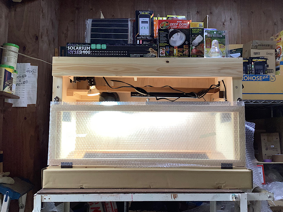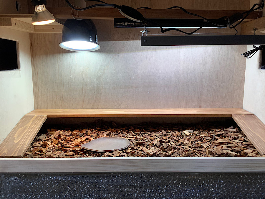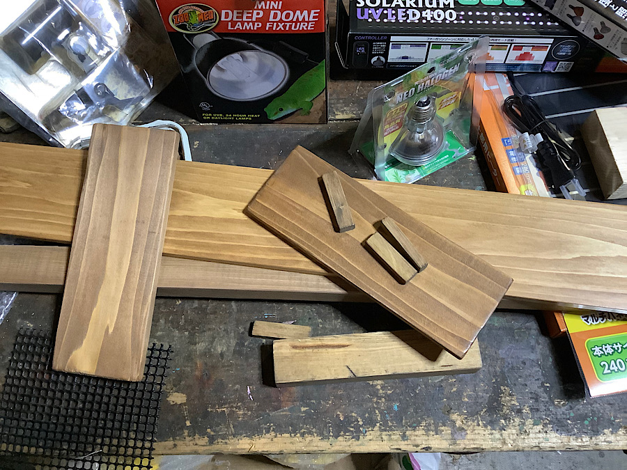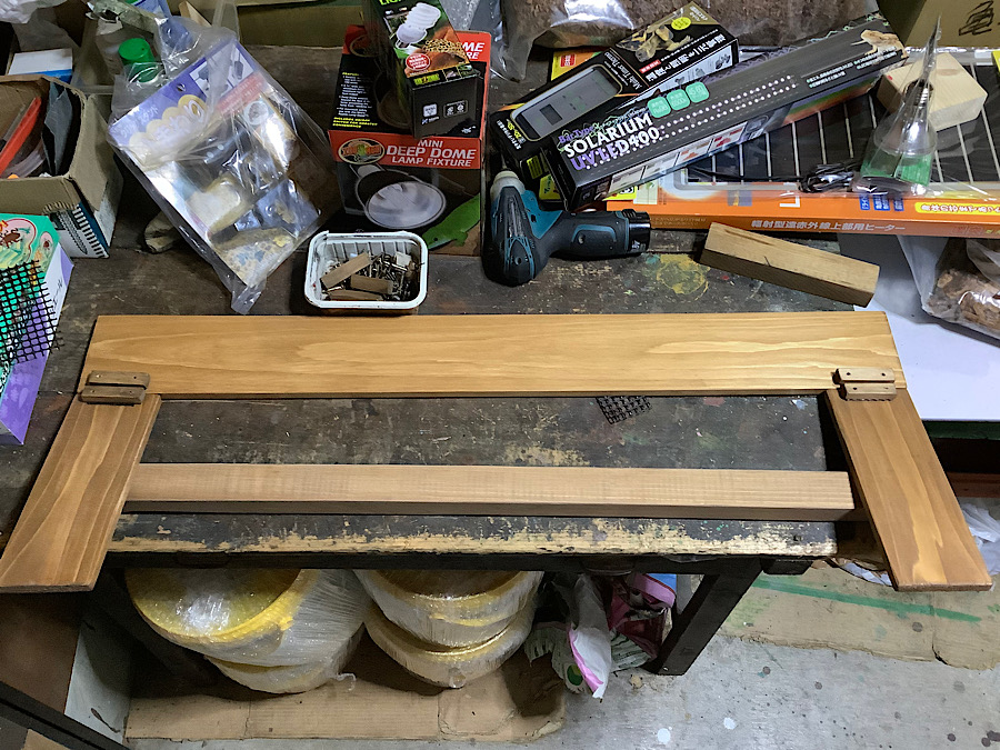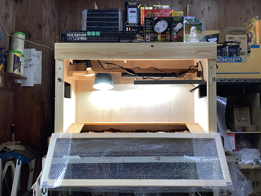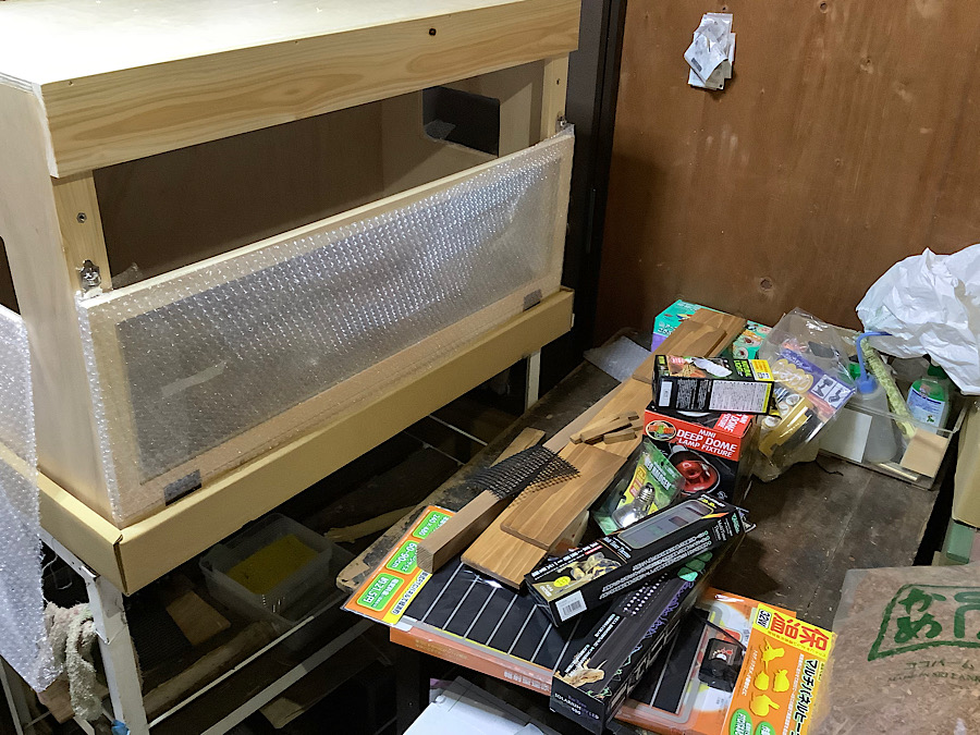 今回のご注文はケージナチュラルでBarTypeソラリウム仕様、かめぢからベース陸型付、通常セッティング(配線なし)だ。最近、後付けでかめぢからベース陸型を注文する客人も多くてな。飼育セット分と合わせて今月8個くらい作ったぞ。ちなみこのお知らせを掲載している頃にはもう次のかめぢから飼育セット+かめぢからベース陸型のセッティングを始めてるだろう。
