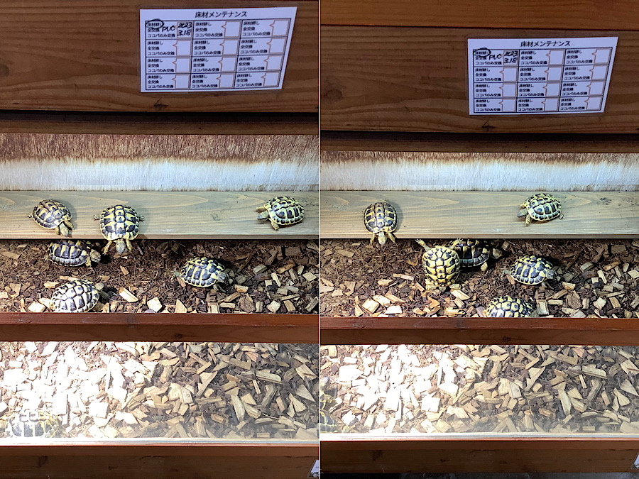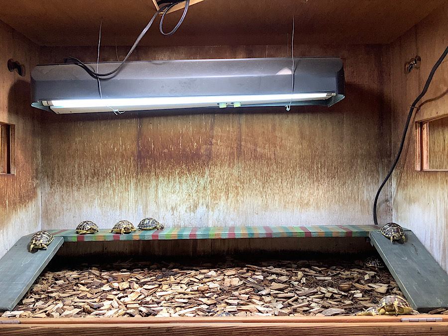 まさに無限の可能性を秘めたかめぢからケージですね。各種ライト、保温、程よい風通しが活きるのもかめぢからケージ自体の作りにあります。箱がしっかりしていないと良い機材を入れても100%の性能で使うことはできません。「60㎝の高さ」という空間、絶妙な通気口、頑丈な作り、リクガメ飼育における多彩な汎用性がこれを可能にしています。