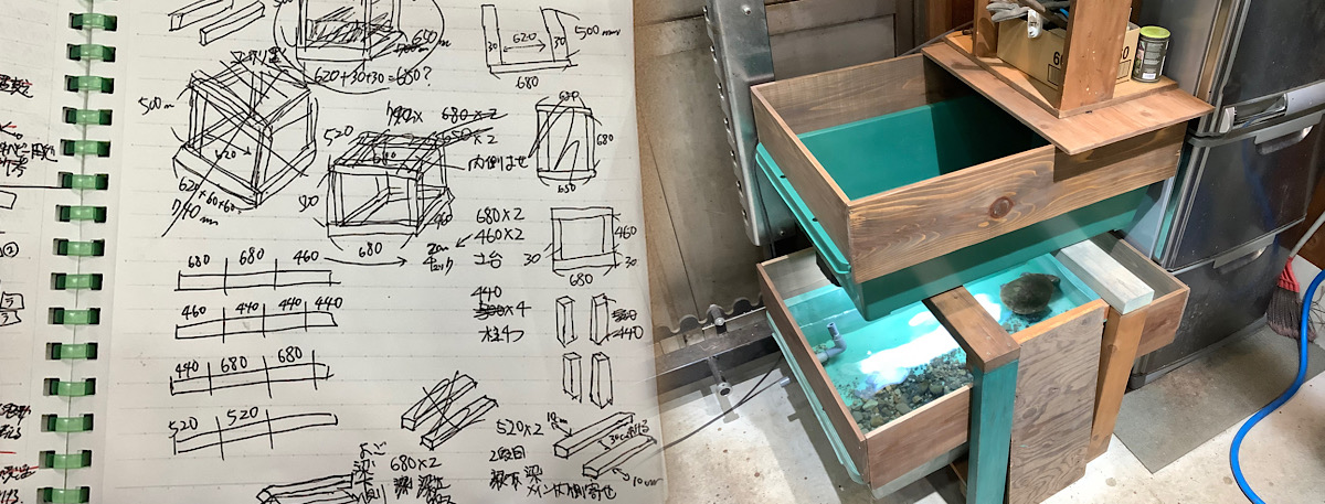 今回のご注文はケージナチュラルでBarTypeソラリウム仕様、かめぢからベース陸型付、通常セッティング(配線なし)だ。最近、後付けでかめぢからベース陸型を注文する客人も多くてな。飼育セット分と合わせて今月8個くらい作ったぞ。ちなみこのお知らせを掲載している頃にはもう次のかめぢから飼育セット+かめぢからベース陸型のセッティングを始めてるだろう。