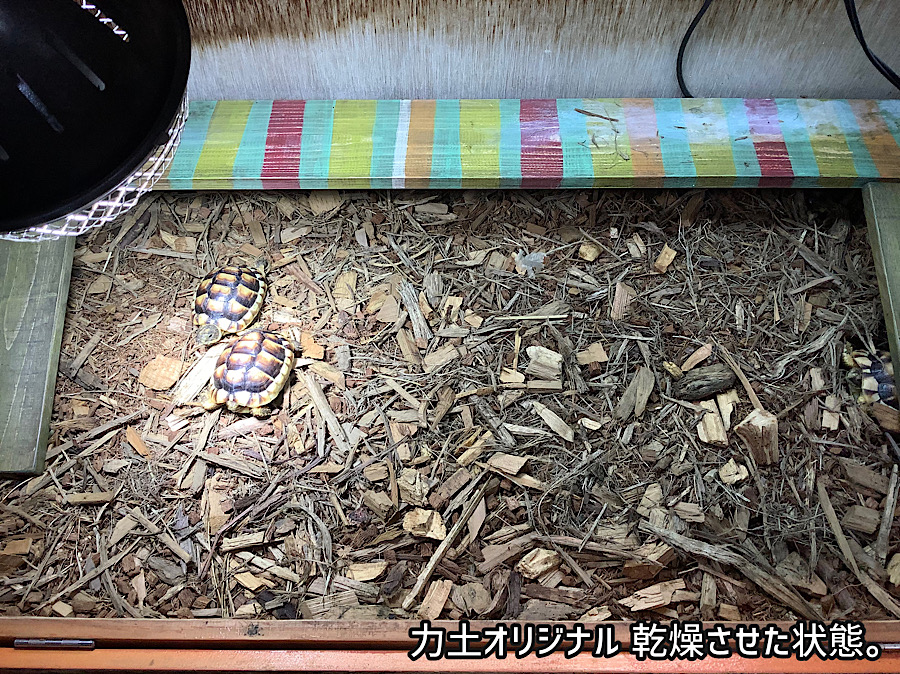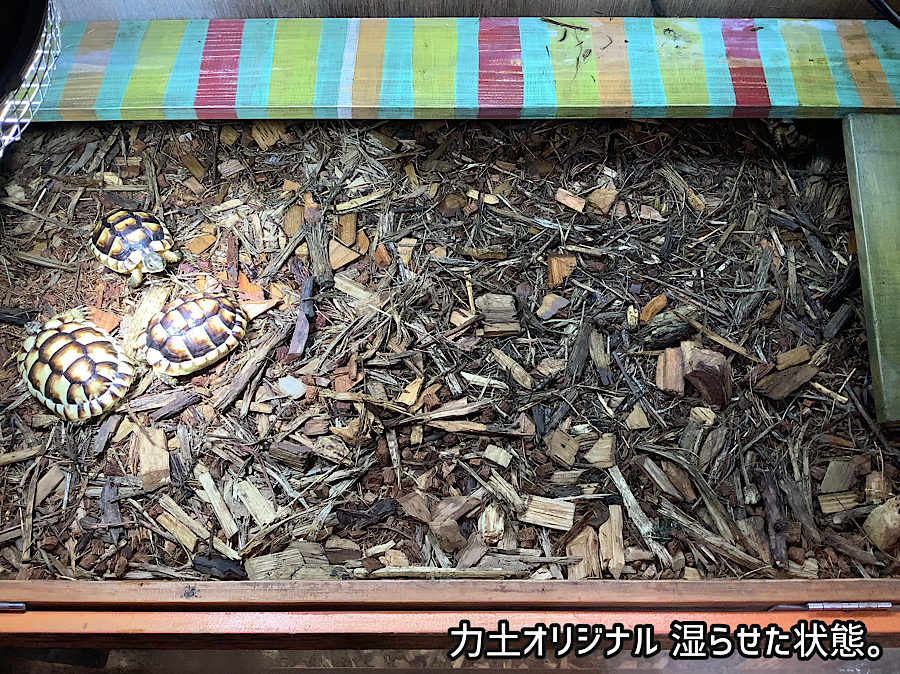 今後1年くらいかけてかめぢから飼育セット用の床材も力土COATの混ざる量は減っていき最終的には力土2O24だけで力土オリジナルとして出していく。かめぢからの床材はオレの尋常ではないこだわりもあって日々研究・進化していく。飼育セットでの力土価格は据え置き¥6500-だ。名称は力土オリジナルに変更してある。これからもよろしく頼む。