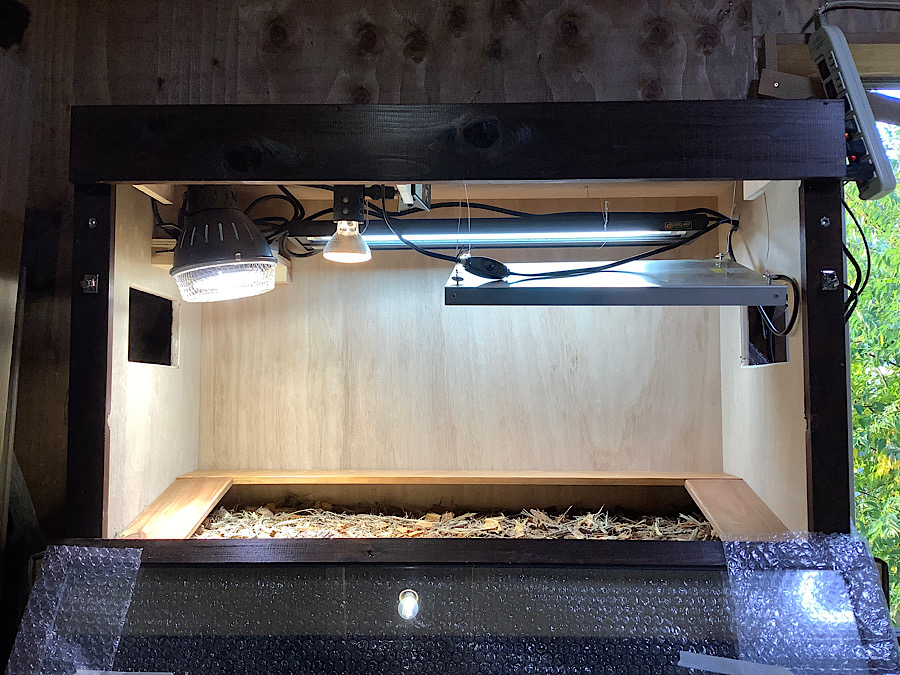 週末はケージを2つセッティング。まずは1個目。お客様持ち込みの飼育機材でかめぢからケージセッティング。あらかじめメールでやり取りからかめぢからベース陸型も欲しいという事で事前に製作しご用意。2個作ってスタンバイ。