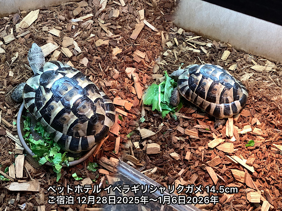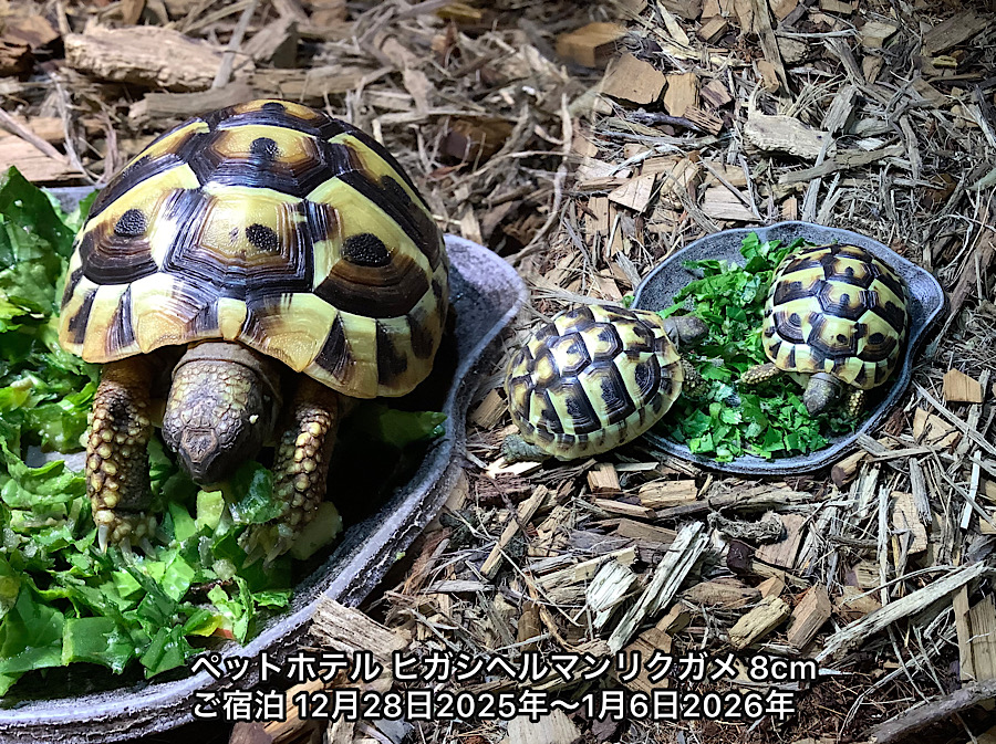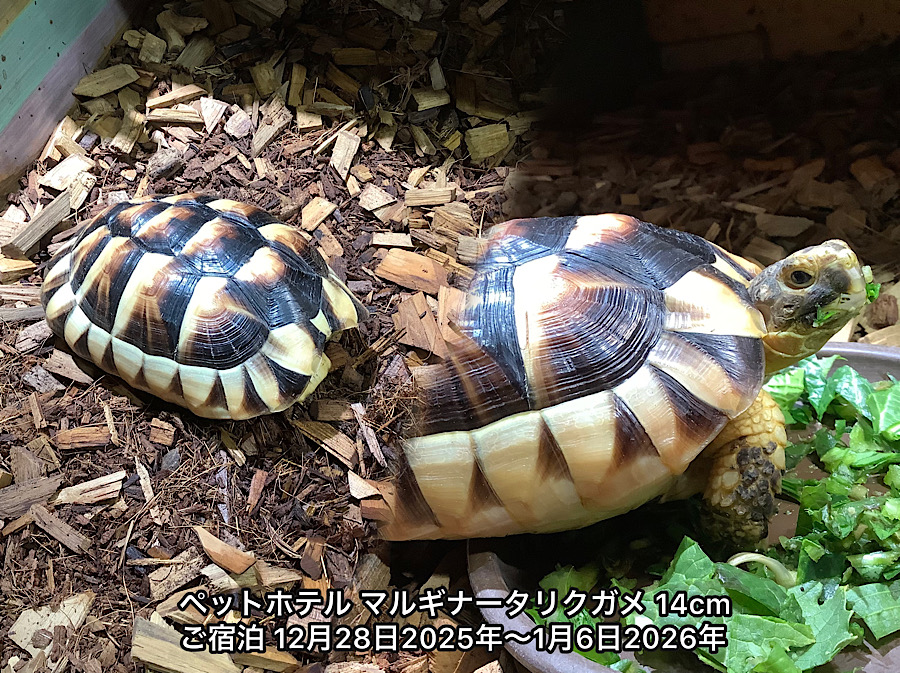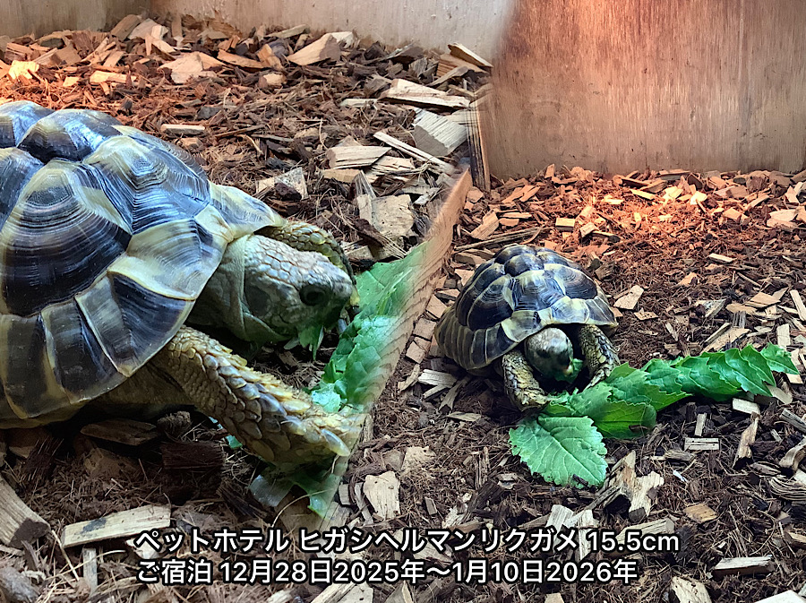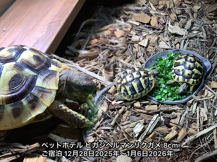 1月6日にチェックアウトのカメ君たちが多いが、去年12月26日からの床材通関の続き、X線検査などで1月6日は出張、休業となってしまった。そんな訳でチェックアウト日を再調整してのペットホテルとなった。皆様にはご迷惑をおかけしてしまったが2026年一番大きな仕事を終えて今は安堵ともう今年の仕事は全てやり切った感である。だから2026年はもう働かない。
