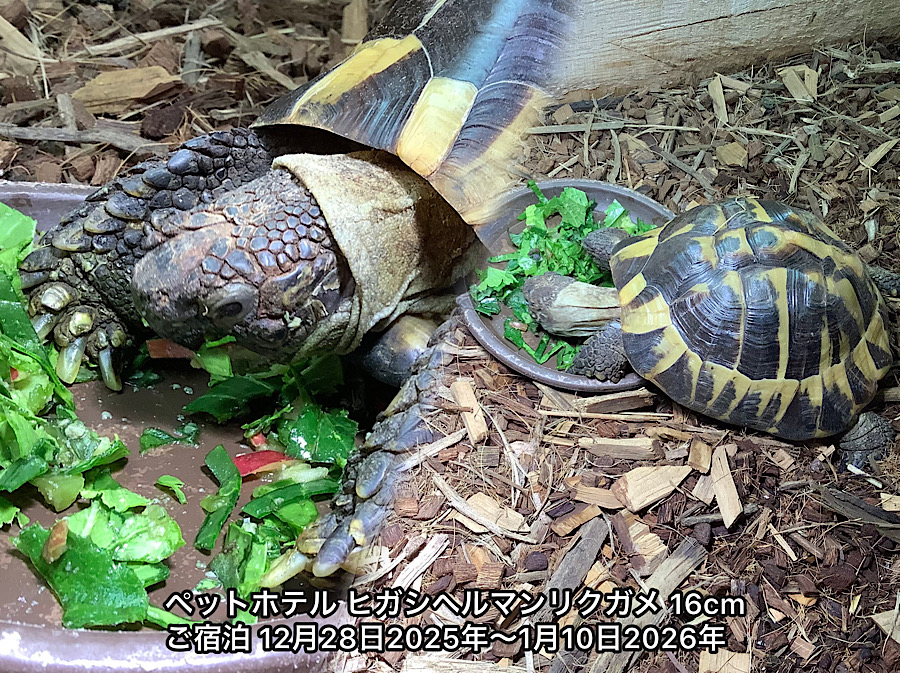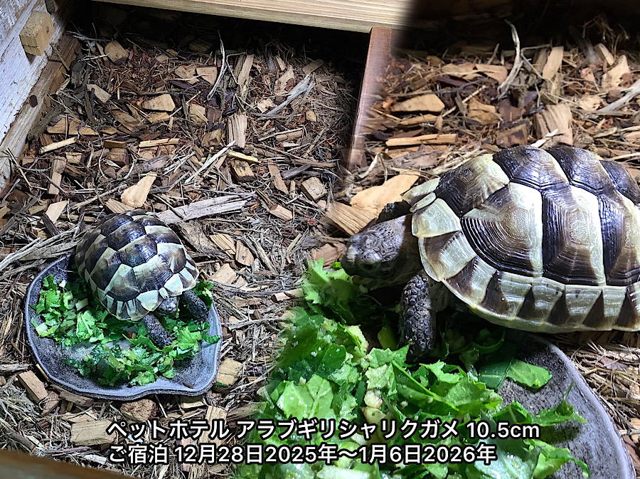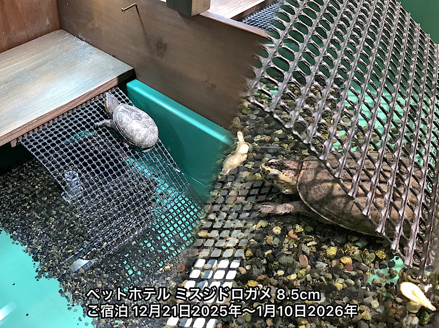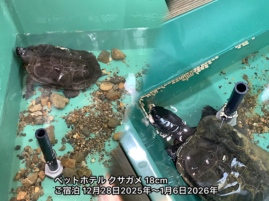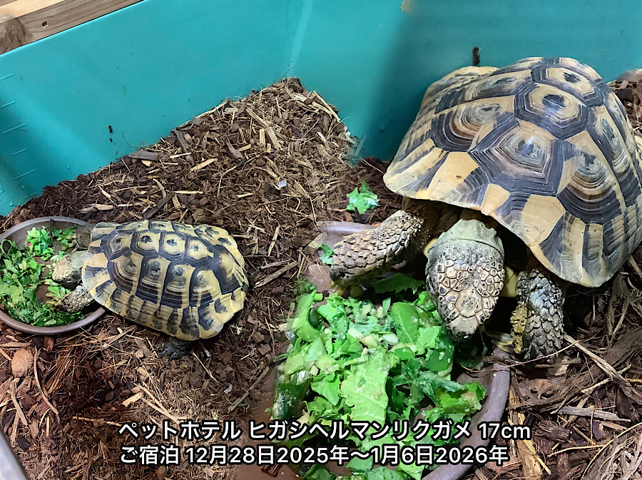 1月6日にチェックアウトのカメ君たちが多いが、去年12月26日からの床材通関の続き、X線検査などで1月6日は出張、休業となってしまった。そんな訳でチェックアウト日を再調整してのペットホテルとなった。皆様にはご迷惑をおかけしてしまったが2026年一番大きな仕事を終えて今は安堵ともう今年の仕事は全てやり切った感である。だから2026年はもう働かない。